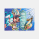 Kleine Girl sitzt mit einem Strandschild hinter ihr mit Strandzubehör, ich bin sicher, Ihr kleines Mädchen mit Liebe dieses Fleecedecke mit ihrem Namen darauf