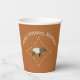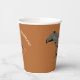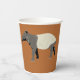 Erstellen Sie ein paar personalisierte Party-Vorräte, wenn Sie diesen Papierbechern Ihre eigene benutzerdefinierte Nachricht hinzufügen. Die Zimt- oder Kupferorange-Tassen zeigen meine Illustration des malayischen oder asiatischen Tapir. Die Tiergrafik ist ein Set in einem rautenförmigen Rahmen auf der Vorderseite mit der benutzerdefinierten Nachricht oben, während eine größere Tapir-Grafik die Rückseite des Bechers schmückt.