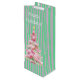 Personalisierter Minzgrün-Rosa gestreifter Weihnac Geschenktüte Für Weinflaschen
