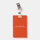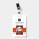 Personalisiertes Business Office-ID-Abzeichen mit rotem und weißem Hintergrund, Foto des Mitarbeiters, Firmenlogo, Name und Beruf.