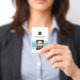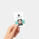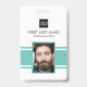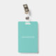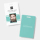 Personalisiertes Business Office ID Abzeichen mit aquamarinem und weißem Hintergrund, Foto des Mitarbeiters, Firmenlogo, Name und Beruf.