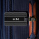 Personalisierter moderner Monogrammreise-Gepäckumbau. Klassischer schwarzer und grauer Entwurf mit weißen mit Monogramm intitial Namensbuchstaben. Elegante Geschenkidee für Männer und Frauen. Stilvoller Zusatz für Taschen und Koffer.