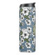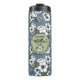 Frische, weiße anemonische Blume mit grünen Blätter tanzen über einen blauen Hintergrund. Personalisieren Sie sich mit den Kindernamen für ein Muttertagsgeschenk, das die Mama beliebt macht!