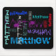 Entworfen für einen Vornamen mit 7 Buchstaben wie Matthew auf Mousepad. Sie können die Hintergrundfarbe und den Text (Farbe, Schriftart, Größe und Position) leicht ändern, indem Sie auf die Schaltfläche Personalisieren oder anpassen klicken. Erhältlich für den Namen mit 6 Buchstaben wie Ashley.