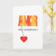 Schicken Sie jemand Liebe auf spanisch, das auf ihrem Geburtstag speziell ist. Dieser helle moderne Entwurf hat AMOR in den orangegelben farbigen Hauptstadtsbuchstaben mit einem Muster der weißen Blumen, gibt es ein rotes Herz, das vom A hängt, und der Gruß ist "feliz cumpleaños" ("alles Gute zum Geburtstag"). Redigieren Sie den Text auf dem Herzen, um die Karte zu personifizieren. Das Mitteilungsinnere kann auch redigiert werden, oder Sie können das vorgeschlagene "Te regalo MI corazón" benutzen ("mein Geschenk zu Ihnen ist mein Herz").