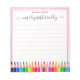 Modern aus dem Schreibtisch des Notepad mit Namen. Dieses Design verfügt über einen Wirblen handgeschriebenen Skriptnamen und unten farbige Bleistifte auf weißem Hintergrund mit rotem Doppelzeilenrahmen. Sie können dieses handgeschriebene Skript mit Ihrem Namen anpassen. Wenn Sie keine Personalisierung benötigen, können Sie diese löschen. Dieses Notizblock ist eine perfekte Geschenkidee für Lehrer und für sie. Wenn Sie Hilfe oder Match-Artikel benötigen, kontaktieren Sie mich bitte. #3364