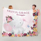 Personalisierter Name Blanket mit Elefant + Blume Fleecedecke