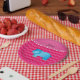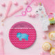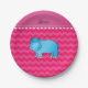 Personalisierter Name blauer Hippo heiß rosa Chevr Pappteller