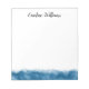 Modernes Notizblock mit einem dunkelblauen Aquarellrahmen unten und Ihrem Namen oben in einem eleganten Script-Schriftart.