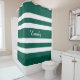 Eleganter Duschvorhang mit grünen und weißen Streifen. Personalisieren Sie sie einfach mit Ihrem Namen, indem Sie den Vorlagennamen durch Ihre eigenen Intialien im Vorlagenfeld ersetzen. Die Badezimmereinrichtung ist passend.