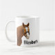 Niedliche und stilvolle Tasse mit Fotografien von Bauernpferden auf weißem Hintergrund. Dieser lustige Schlamm ist ein personalisiertes Geschenk, um den Namen zu verändern.