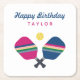 Feiern Sie Ihren Pickleball-Spieler oder -Fan mit diesen lustigen und lebendigen Party-Untersetzer mit gestreiften blau, grün und rosa Pickleball-Paddeln. Text ist anpassbar. Glückliche Geburtstagsnachricht ist auch anpassbar. Teil einer Sammlung von Parcel Studios.