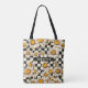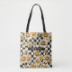 Retro Groovy Daisy Checkerboard Personalisiert Name Tragetaschen bietet ein groovy Farbmuster auf einem schwarz-weißen Schachbrettmuster Hintergrund mit Ihrem benutzerdefinierten Text oder personalisierten Namen in der Mitte. Perfekt als Geschenk für Familie und Freunde zu Weihnachten, Geburtstag, Urlaub, Muttertag, Arbeitskollegen und mehr. Erstellt von ©Evco Studio www.zazzle.com/store/evcostudio