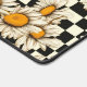 Retro Groovy Daisy Checkerboard Personalisiert Name Desk Mat Mouse Pad bietet ein groovy Muster auf einem schwarz-weißen Schachbrettmuster Hintergrund mit Ihrem benutzerdefinierten Text oder personalisierten Namen in der Mitte. Perfekt als Geschenk für Familie und Freunde zu Weihnachten, Geburtstag, Urlaub, Muttertag, Arbeitskollegen und mehr. Erstellt von ©Evco Studio www.zazzle.com/store/evcostudio