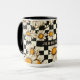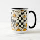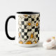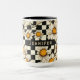 Die Retro Groovy Daisy Checkerboard Personalisiert Name Tea Coffee Tasse zeichnet sich durch ein grooves, dunkles Muster auf einem schwarz-weißen Schachbrettmuster-Hintergrund aus, in dem Sie Ihren eigenen Text oder personalisierten Namen in der Mitte haben. Perfekt als Geschenk für Familie und Freunde zu Weihnachten, Geburtstag, Urlaub, Muttertag, Arbeitskollegen und mehr. Erstellt von ©Evco Studio www.zazzle.com/store/evcostudio