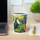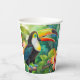 Bild eines tropischen Toucan-Vogels, umgeben von grünen Blätter und Hibiskus-Blume, generiert mithilfe von KI. Sie können diesen Papierbecher ganz einfach mit Ihrem eigenen Namen oder Text personalisieren.
