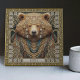 Tauchen Sie ein in die faszinierende Aura unserer Zauberbären-Keramik. Mit Sorgfalt entwarf die Kachel einen Bären, der mit Stammestühlen geschmückt ist und den Geist der fröhlichen Ästhetik und der Teppichpunk-Kultur verkörpert. Dieser strahlende Bär symbolisiert die schützenden, liebevollen Geister von verehrten Familienmitgliedern, Freunden oder Lieben in unserem Leben. In symmetrischer Harmonie aus tiefen Purpel, dunkler Blues, reichen Braun, lebhaften Golden und intensiven Aquamarinen erinnert das Design an den Mystik eines Altarbildes. Doch die Geschichte endet noch nicht. Subtil versteckt in dem opulenten Design sind zarte Schmetterlinge, ihre flüchtige Schönheit symbolisiert Transformation, Widerstandskraft und Lebensfreude. Jede Kachel wird mit einem personalisierten Namensfeld ausgeliefert, das lasse, sie wirklich zu einem eigenen zu machen. Bringen Sie diese Kachel in Ihren Raum, um eine einzigartige spirituelle Reise zu feiern, oder geben Sie sie als nachdenkliches, personalisiertes Geschenk an jemanden, den Sie lieben.