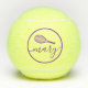 Personalisierte Tennisbälle mit einem lila individuelle Name oder Text in einem femininen gürtlichen und modernen hübschen Drehbuch-Schriftart und einfaches Tennisschläger-Monogramm mit einem Kreisrahmen. Jeder weibliche Tennisspieler würde den eleganten Look dieser modernen mit Monogramm Übungsbälle schätzen.