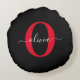 Personalisierter Name für Monogramm-Skript Schwarz Rundes Kissen