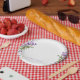 Personalisierte Lavendel Cocktailplatte. Weißer Hintergrund. Grünpflanzen. Aquarelllavender. Dusche.