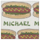 Die Stoffe zeigen eine originelle Marker-Abbildung eines Hot Dog mit Senf und versetzen sich auf einen Bun. Einfach mit Ihrem Namen personalisieren!