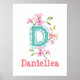 Personalisierte Blumenbezeichnungen Kinderzimmer Art Poster drucken mit Blume und Name Initial. Kinderzimmer Kunstgeschenk Idee für Kinderzimmer.