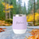 Personalisierte lila lila Skriptweintumbler. Moderner, eleganter, trendiger Weintumbler.
