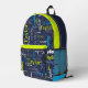 Typografischer kurzer Namenstext in Blau, Grau, Zyanblau, hellgelb, grün und weiß auf einem dunkelblauen Hintergrund benutzerdefinierter Boy-Rucksack. Die Hintergrundfarbe kann bei Bedarf geändert werden, wenn derzeit dunkelblau angezeigt wird. Spaß personalisierter Grafik-Text personalisiert Rucksack, ideal für, Schule, Uni, Schullager oder Ausflüge. Personalisieren Sie mit Ihrem eigenen kurzen Namen, liest derzeit Taylor für Hilfe bei Personalisierung und anderen Namen Länge bitte kontaktieren Sie mich. © Design by Sarah Trett for www.mylittleeden.com