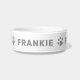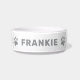 Diese einzigartige, individuelle Haustier- oder Katzenschale hat ihren Namen im modernen Allkapsstil mit niedlichen Pfotendruckakzenten rund um die Schüssel. Ein einfaches und sauberes Design für Ihre Möbel Familienmitglieder. Beachten Sie, dass die Farbe des grauen Textes und des Pfows geändert werden kann.