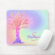 Monogramm-Rainbow-Maus-Pad mit personalisiertem Namen. Dieses hübsche Mauspad ist mit einem Baum und Hintergrund in Regenbogenfarben mit funkelnden Sternen dekoriert. Sie können es mit einem Namen und Monogramm anpassen. Original Mosaikbaum © Michele Davies.