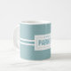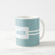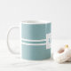 Diskretes, bläulich blühendes Tulpenmuster, Name und Nachname anpassbare Label-Tasse. Perfektes Rentengeschenk.