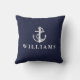 Personalisierter Name Nautic Anchor Navy Blue Kissen