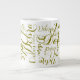 Name, der in olivem Schriftart (Vorlage für kurze Bezeichnung) auf der gesamten Oberfläche der weißen Tasse wiederholt wird.