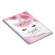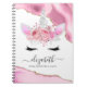 Personalisiertes Einhornheft mit rosa und goldfarbenem Glitzer an Kristallkanten, niedliches Einhorngesicht mit gürtelhaften Blumenmustern, der Name des Kinder in einem eleganten Kalligraphie-Schriftart und ein personalisiertes Sprichwort, das gelöscht werden kann.