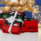 Modernes und trendiges Baseballmuster mit Baseballschlägern, Baseballschlägern, Schnee, niedlichen Santa-Claus, Weihnachtsmannmützen, weißblaue Schneeflocken, grüne Rot- und Gelbsterne, grüne Weihnachtsbäume mit schwarzem Hintergrund und personalisiert mit rotem schwarzem Streifen, nur mit Ihren Namensgeschenken oder Monogrammgeschenken oder Ihren Initialen für ein einzigartiges Geschenk. Sportgeschenke Ideen für Männer, Jungen und Mädchen. Ideal für Weihnachtsgeschenke.
