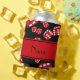 Spaß Würfel Geschenkideen. Moderner und trendiger Individuelle Name Schwarz Muster Hintergrund mit roten Würfeln mit rotem Streifen personalisiert mit nur Ihren Namen Geschenke oder Monogramm Geschenke oder Ihre Initialen für ein einzigartiges Geschenk. Dice Geschenkideen für Kartenspieler, Spieler und Liebhaber von Spielen.