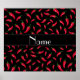 Chili Paprikaschoten Geschenke Ideen. Roter Chili Paprikaschoten Muster mit schwarzem Hintergrund, schwarzer Streifen personalisiert mit Ihren Namen Geschenke oder Monogramm Geschenke oder Ihre Initialen.
