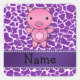 Erstellen Sie Ihre eigenen Personalisierten mit einem Namen, Monogramm, Initialen oder Sprichwort niedlichen Cartoon Schwein Tier mit einem lila Glitzer giraffe Tierabdruck (nicht echte Glitzer) Muster Hintergrund und lila Streifen. Niedliche Geschenkideen.