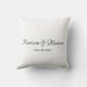 Personalisierter Name des Paares und Date Wedding Throw Kissen. Elegantes, klassisches, minimalistisches Design. Schwarz und Weiß