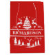 Red Christmas personalisiert Familienname Custom Monogram Urlaubmedium Geschenktasche. Erhöhen Sie Ihre Weihnachtsgeschenkverpackung mit dieser personalisierten Tasche. Diese individuelle Familiennamen-Tasche verleiht Ihrer Urlaubsgeschenkverpackung eine einzigartige Touch und sorgt für ein wohlüberlegtes Familiengeschenk.
