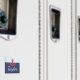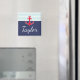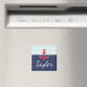 Navy blaue und rote nautische Magnete mit eigenem Text.
