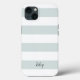 Chic personalisierte Gehäuse mit pastellfarbenen, grün-weißen Streifen mit Ihrem Namen, Monogramm oder Lieblingsphrase in schwarzen Kalligraphieschrift Schrift. Das klassische, preppy-Design ist perfekt, um Ihrem Handy Stil und Schutz in einer trendigen pastellfarbenen Palette hinzuzufügen.