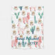 Niedliche Pink Lama's und grüner Kaktus Personalisiert Fleece Blanket für kleine Mädchen. Name des Kindes und Geburtsdatum hinzufügen