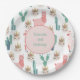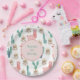 Niedliche Pink Lama's und grüner Kaktus Papier Party Teller. Personalisieren Sie sie mit dem Namen und dem Jahr Ihres Kindes.
