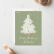 Personalisierte niedliche Salbei Grün Weihnachtsbaum und Schneekarte.