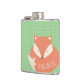 Personalisierter Niedlicher Schlaffox Green Polka Flachmann