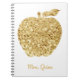 Personalisiertes Lehrer-GoldImitatsequin-Apple-Notizbuch. Schöne schillernde Schein-Imitat Sequingoldapfel-Silhouette. Personifizieren Sie mit dem Namen des Lehrers im hübschen Skript. Spaßlehrergeschenk. www.SamAnnDesigns.com