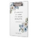 Bleiben Sie mit Glauben und Ermutigung organisiert mit diesem personalisierten christlichen Klemmbrett mit Matthäus 28:6 (KJV). Sanfte blaue und elfenbeinfarbene Aquarellblumen umrahmen die Auferstehungsschrift, während ein benutzerdefinierter Name eine durchdachte, persönliche Note hinzufügt. Ideal als Ostergeschenke oder für den täglichen Gebrauch, verbindet dieses Klemmbrett Inspiration mit praktischer Funktion.