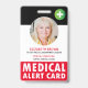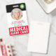 Moderner Personalisierter medizinischer Warnhinweis. Design verfügt über ein Foto, einen Namen, eine Adresse und weitere Details auf der Rückseite.