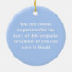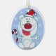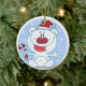 Ein bezaubernder Eisbär in einem roten Strumpf und ein großes Lächeln hält einen Bonbonstock auf einem anpassbaren Ornament mit blauem Hintergrund und Schneeflocken!